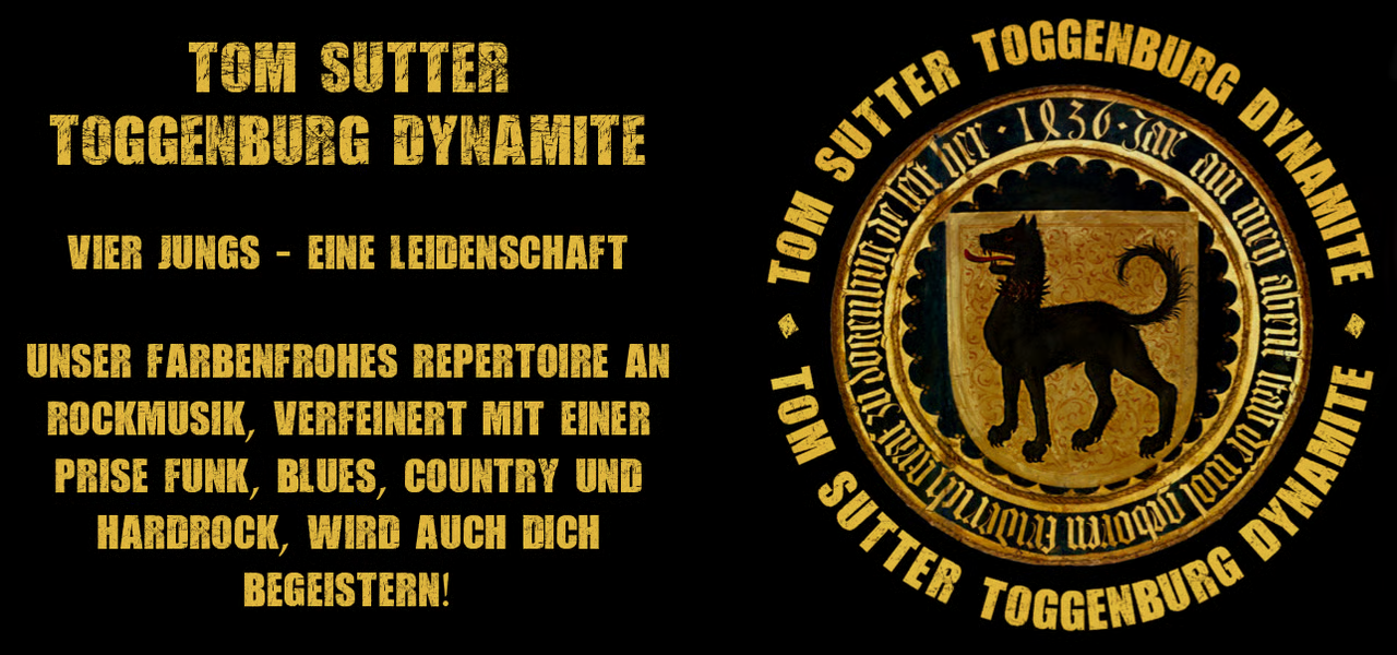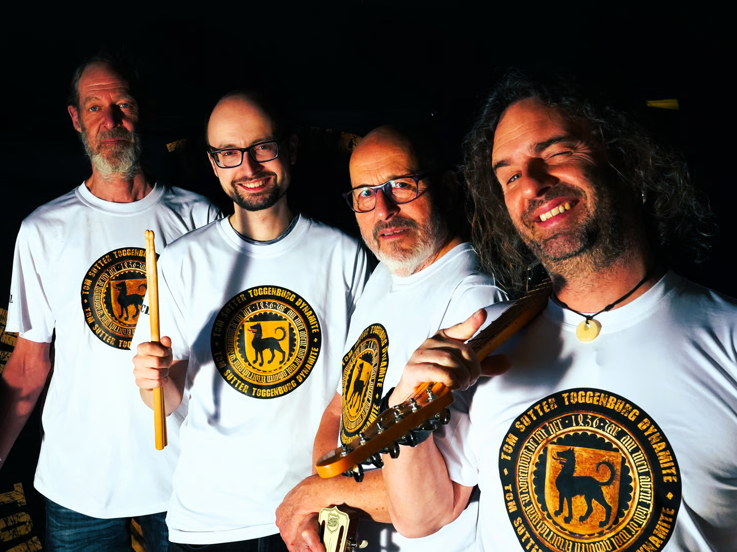 Tom Sutter - Toggenburg Dynamite, bestehend aus den Bandmitgliedern Tom, Jack, Chrischi und Christoph ist die von Tom Sutter im Jahr 2022 gegründete Rockband aus dem Toggenburg. Komplettiert wird das Quartett vom Sounddesigner Ursin.