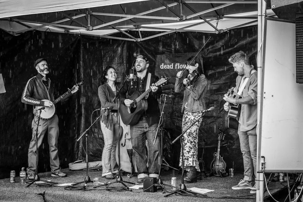 An einem schönen Spätsommertag 2016 entstand aus einer spontanen Jamsession am Wiler Weier die Band Dead Flowers.Die ersten Schritte in den Cowboystiefeln führten Sie in die kleinen Saloons der Stadt und bald zu den grossen Duellen auf den Bühnen des Rock am Weier und Openair St. Gallen. Die Latzhosen sitzen und die Stiefel sind poliert. Eine Mischung aus Eigenkompositionen und Cover-Interpretationen von Folk-/ Country und Bluegrass bis hin zum Yodeling Cowgirl machen die vielfältige Band aus. Der Klang der Seiteninstrumente, der Mundharmonika und der verschmelzenden Gesangstimmen fegt den Wüstenstaub von jeder Bühne.