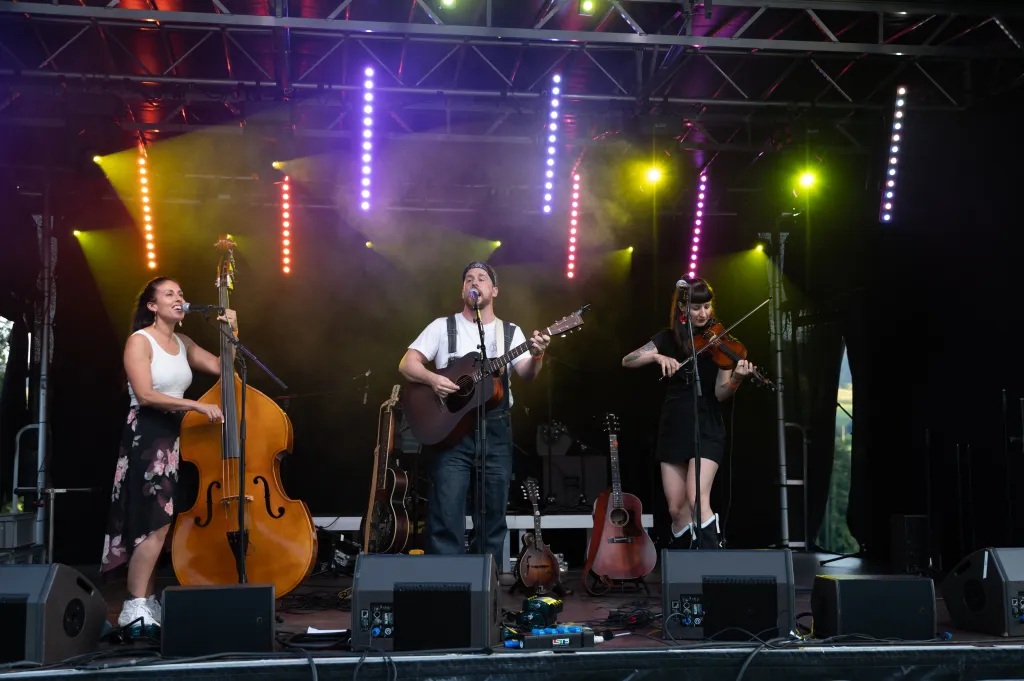 Zu fünft bepackt mit Bluesharp, Geige, Gitarre, Lapsteel, Mandoline, Banjo und Kontrabass.